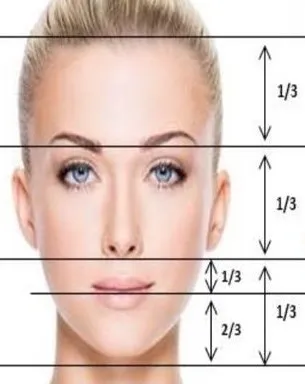 A proporção esteticamente agradável é que o vermelhão labial tenha ao menos 30% da altura entre a base do nariz e o começo do lábio. E o lábio inferior e seja 1.6 do superior. Se olhamos de frente, o terço inferior da face – composto pelo lábio e mento (queixo) –dividido em 3 partes, vemos que o lábio superior corresponde a 33% dessa altura.